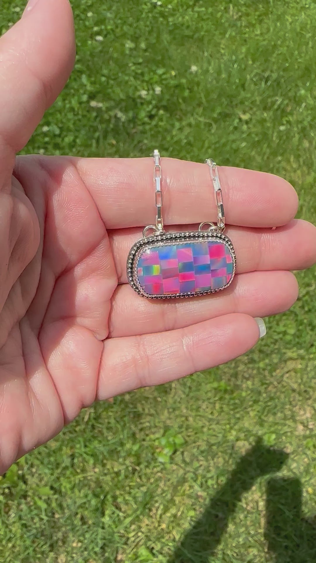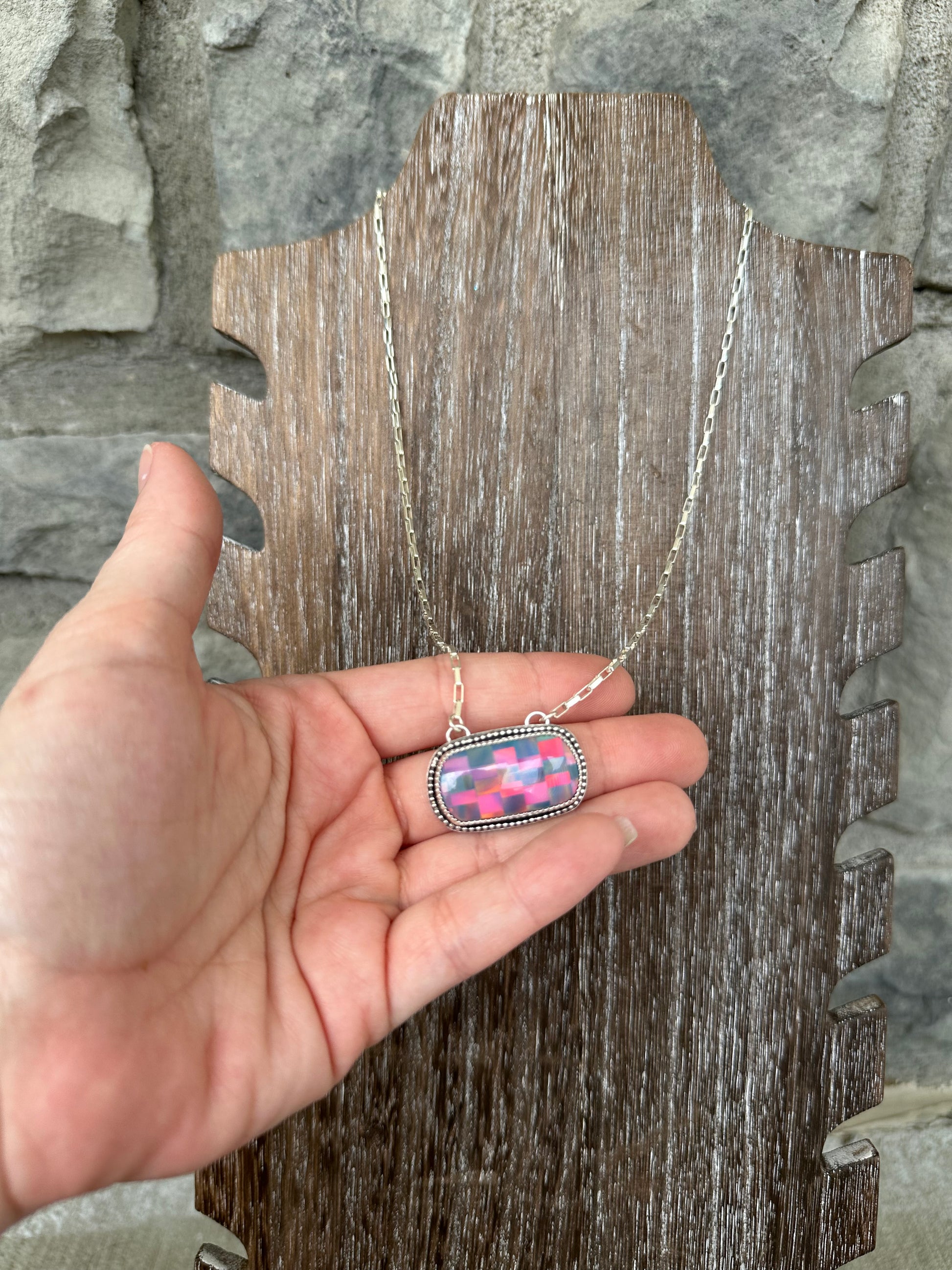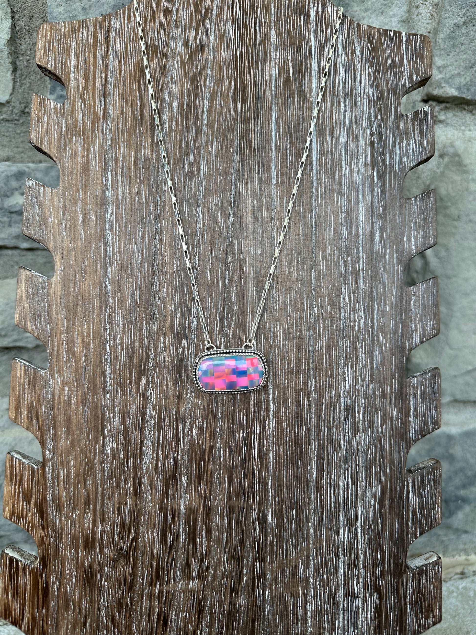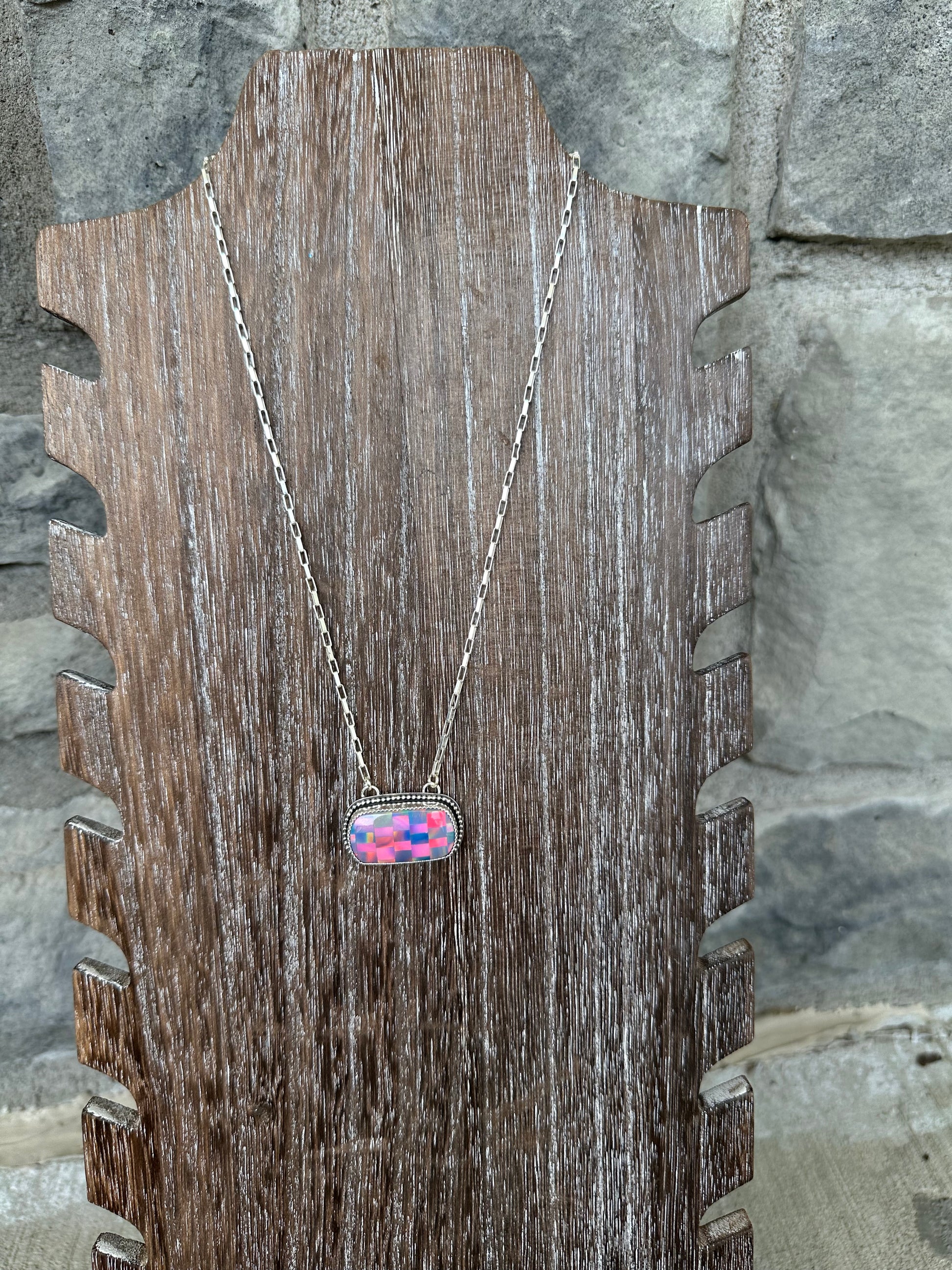 Aurora opal Mosaic bar necklace