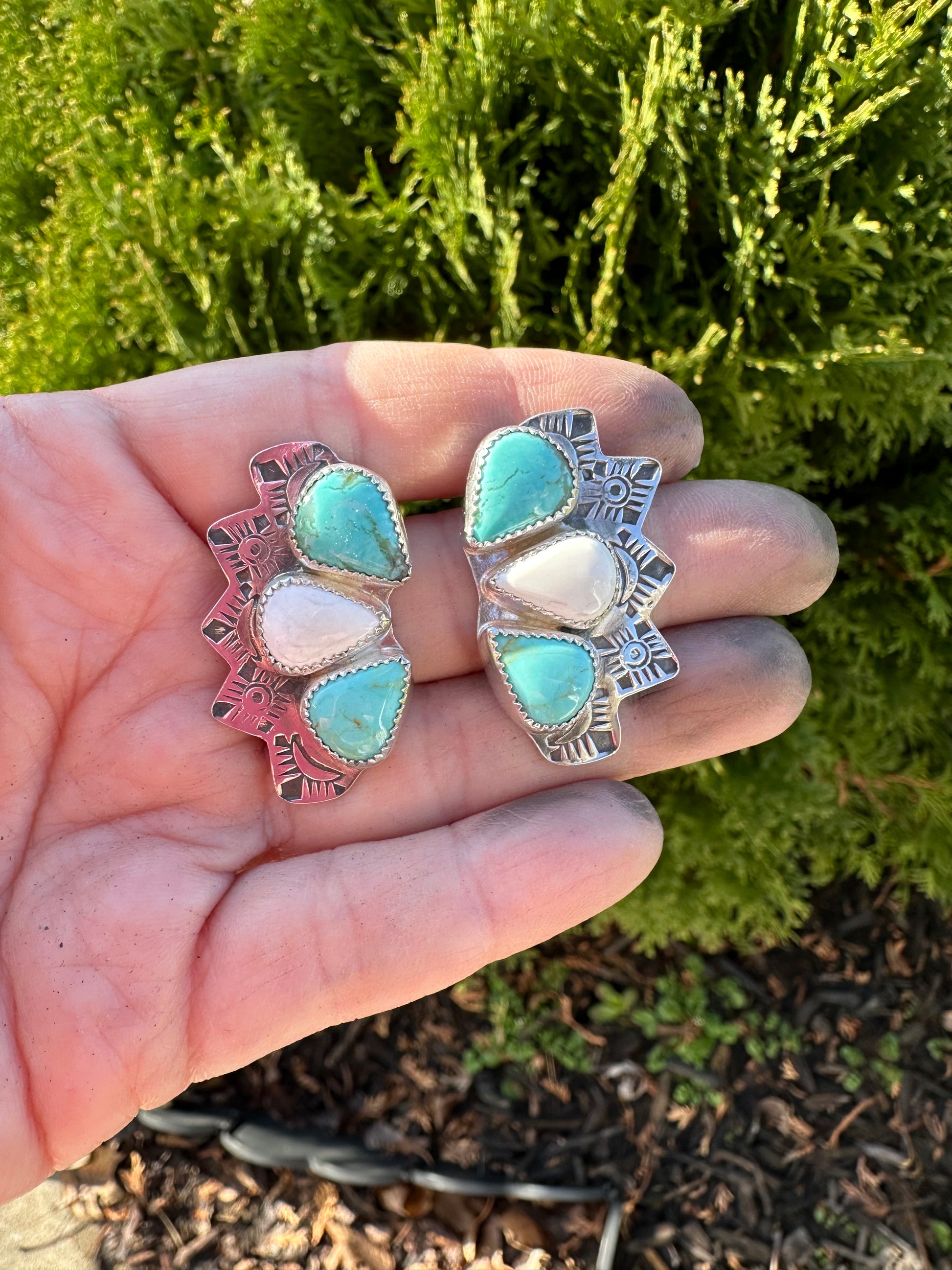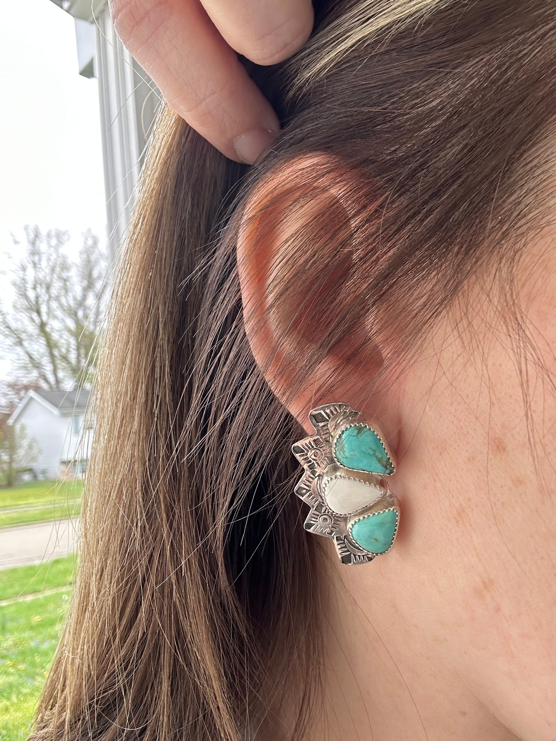 Baja and Pristine Cluster statement earrings are made from sterling silver and fine silver. Hand stamped designs.