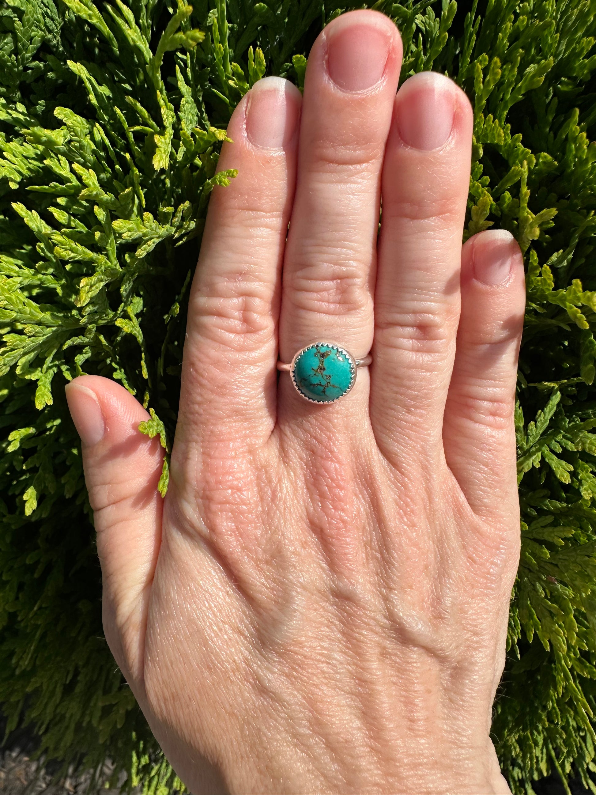 Hubei turquoise ring size 6.5 sterling and fine silver
