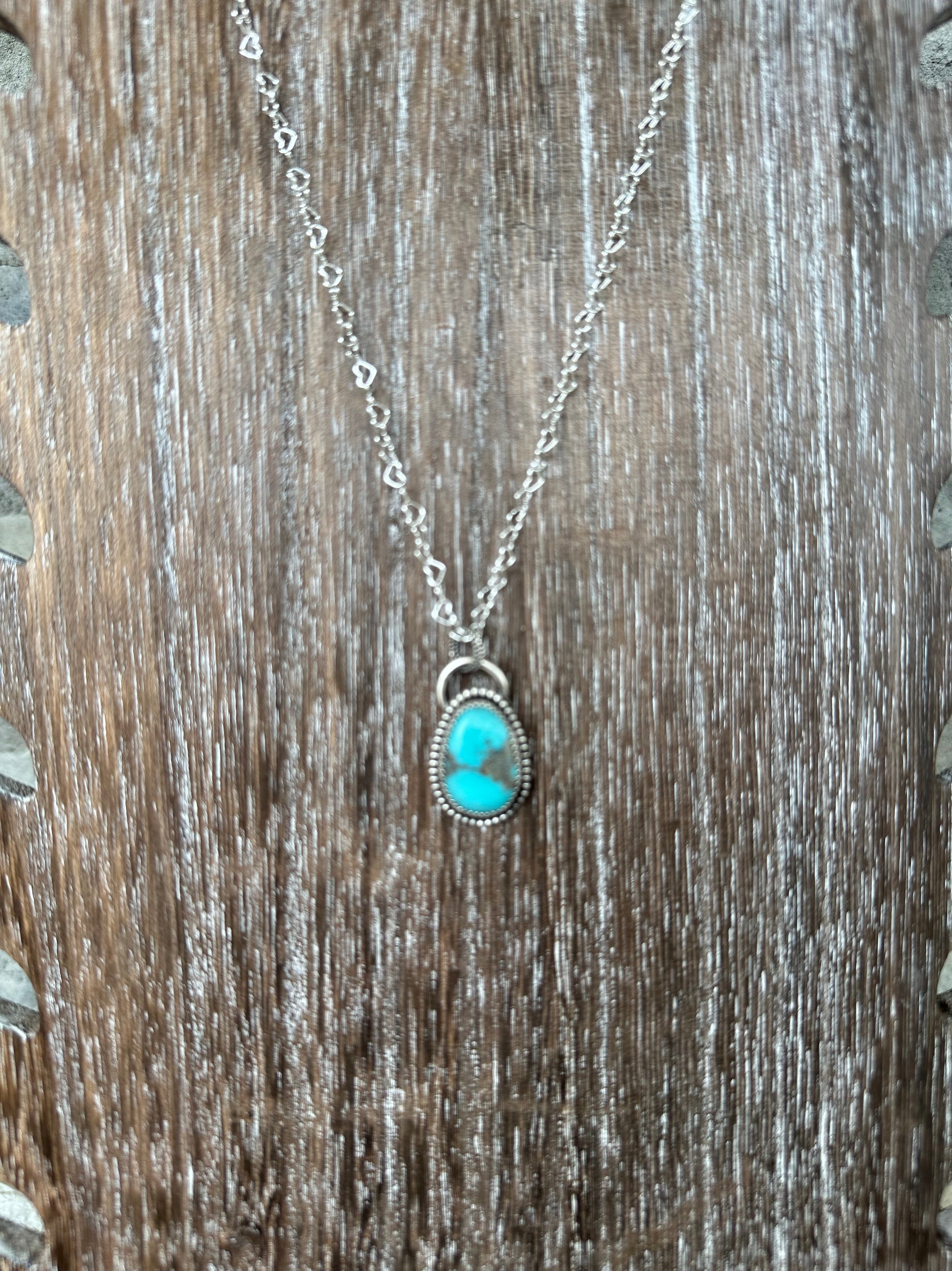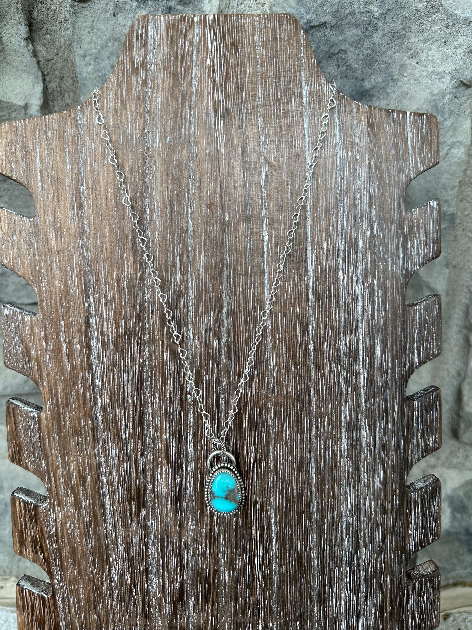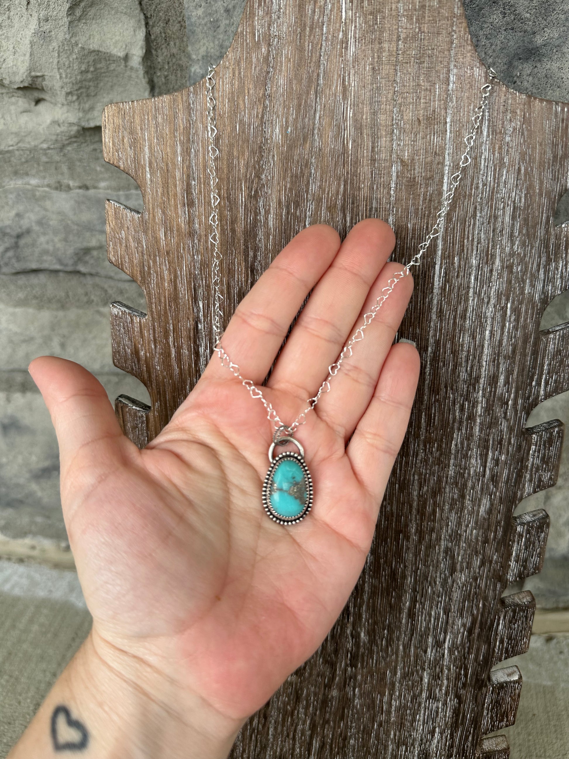 This is a Kingman Turquoise pendant that was constructed using sterling silver .925 and fine silver .999 Come on a heart chain