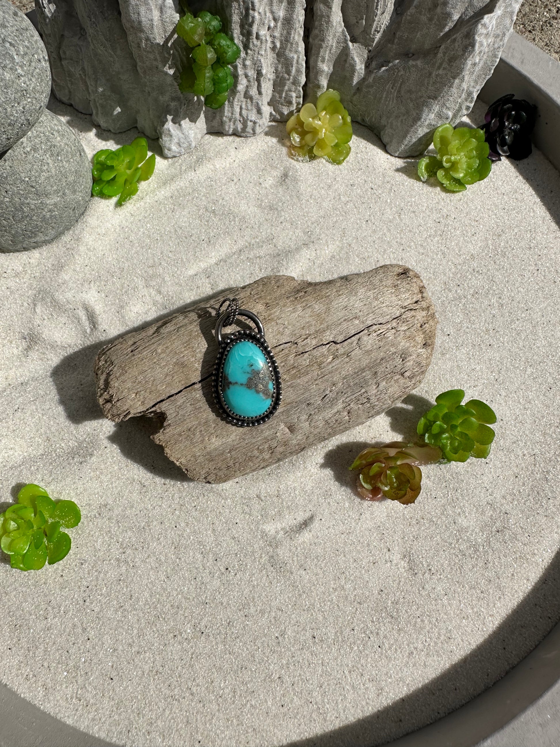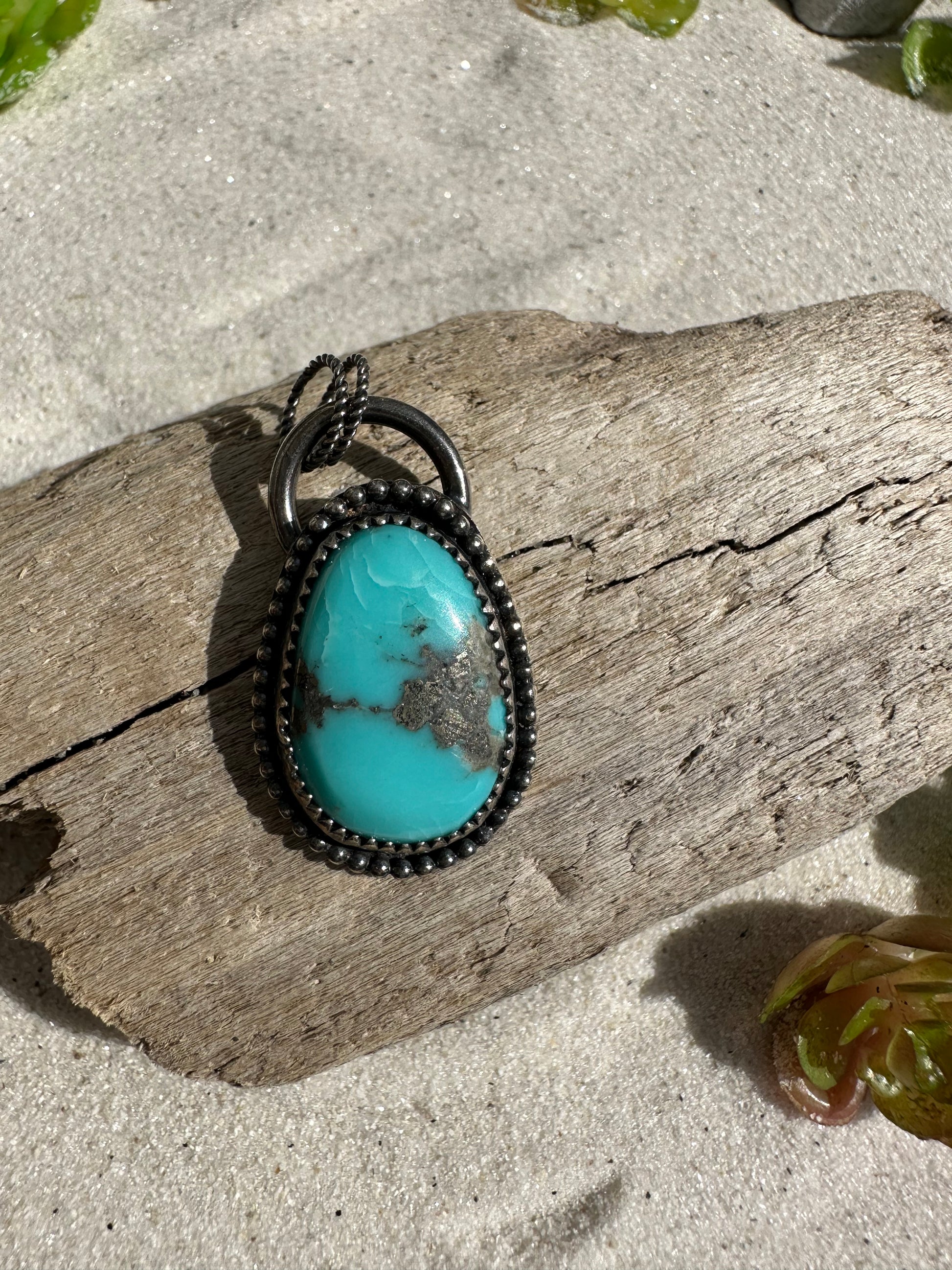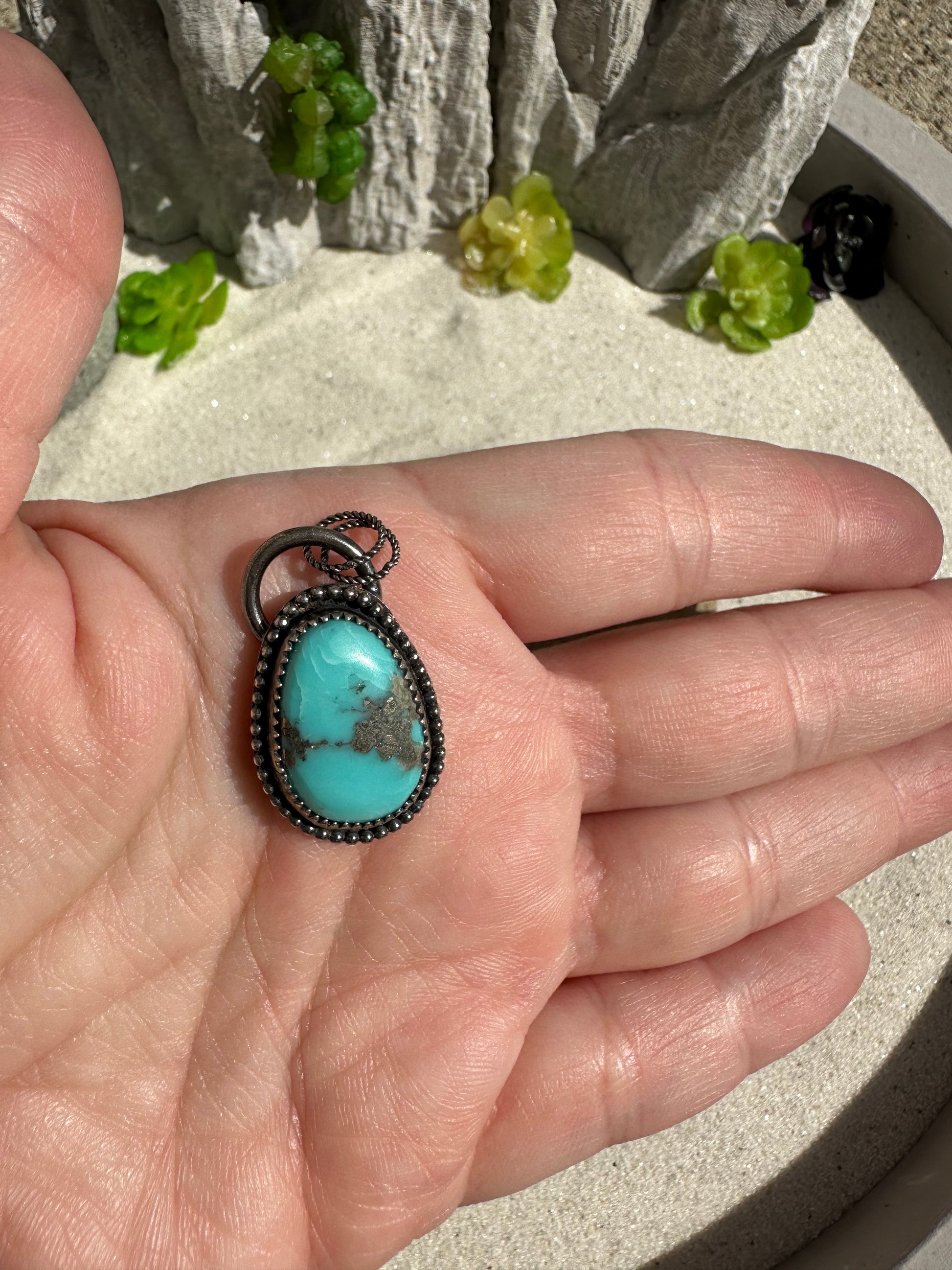 This is a Kingman Turquoise pendant that was constructed using sterling silver .925 and fine silver .999 Come on a heart chain