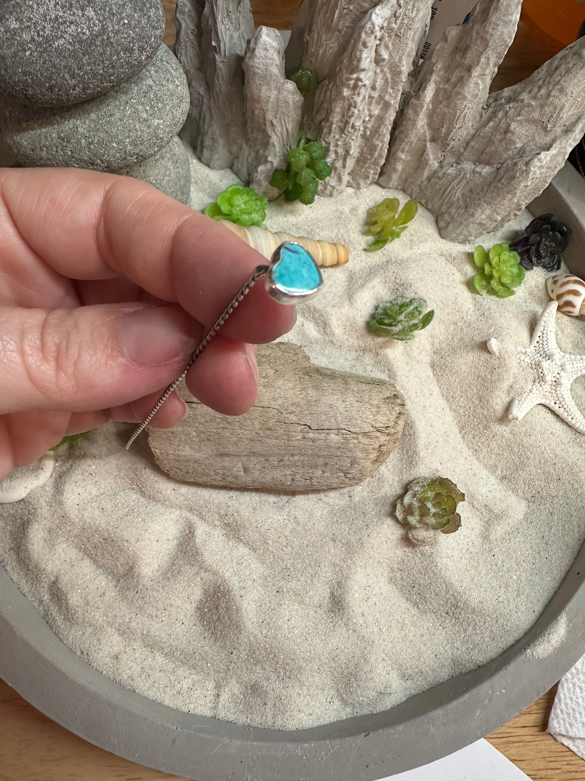 Stunning Kingman Heart Bookmark. Made from sterling silver and fine silver. Approximately 4 inches in length but some can vary slightly due to the handmade nature of the item.