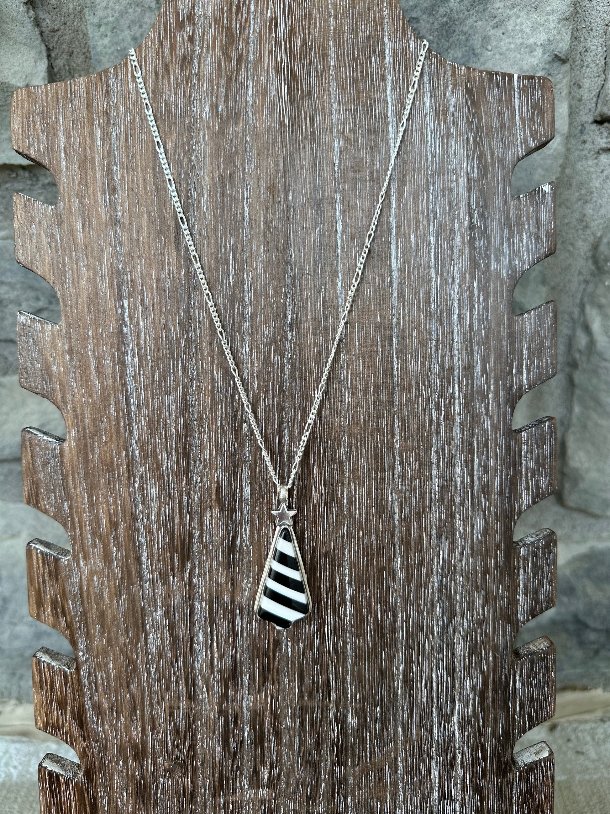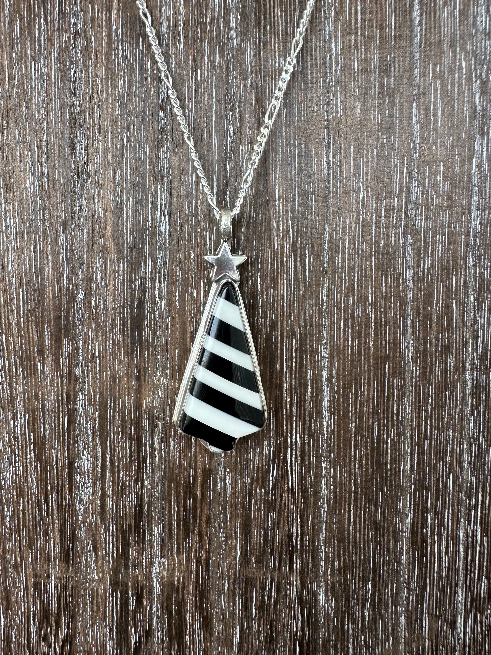 Mosaic tree with star on top. 16 inch sterling silver chain. Made with sterling and fine silver