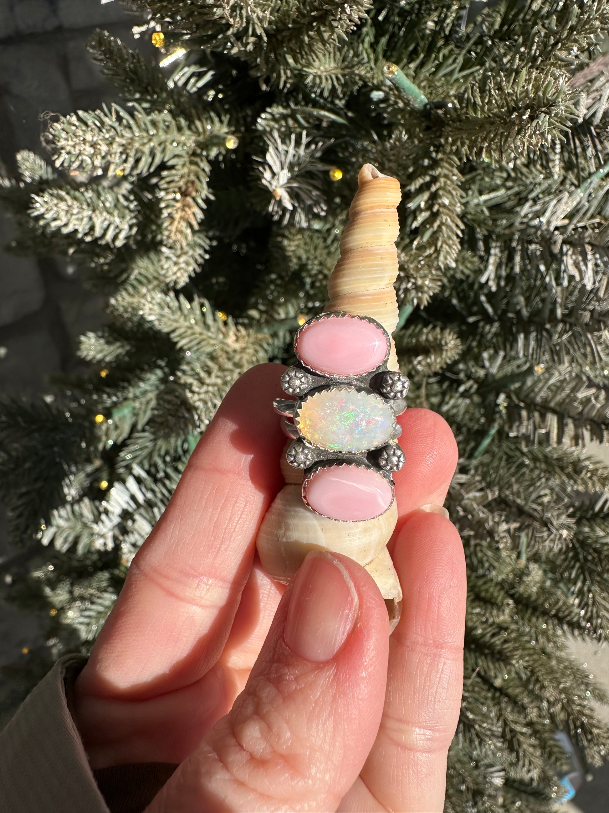 Opal and Pink Conch Ring