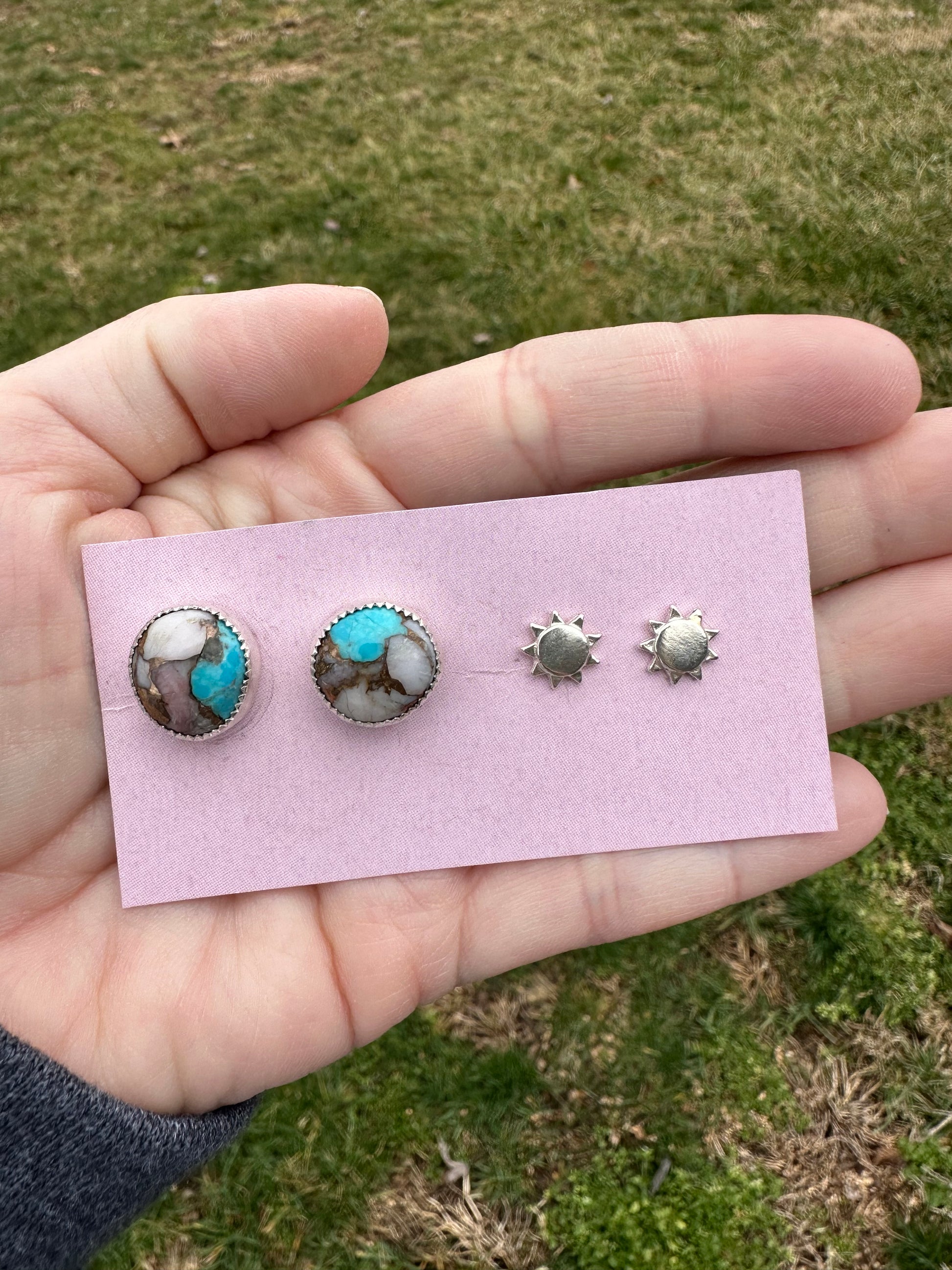 Pink Peruvian and Kingman Turquoise Mojave Chunky Earrings