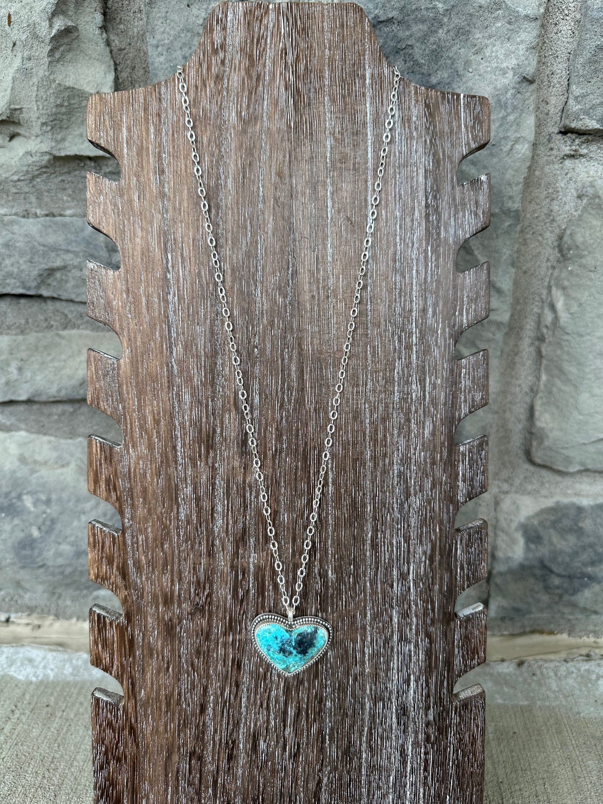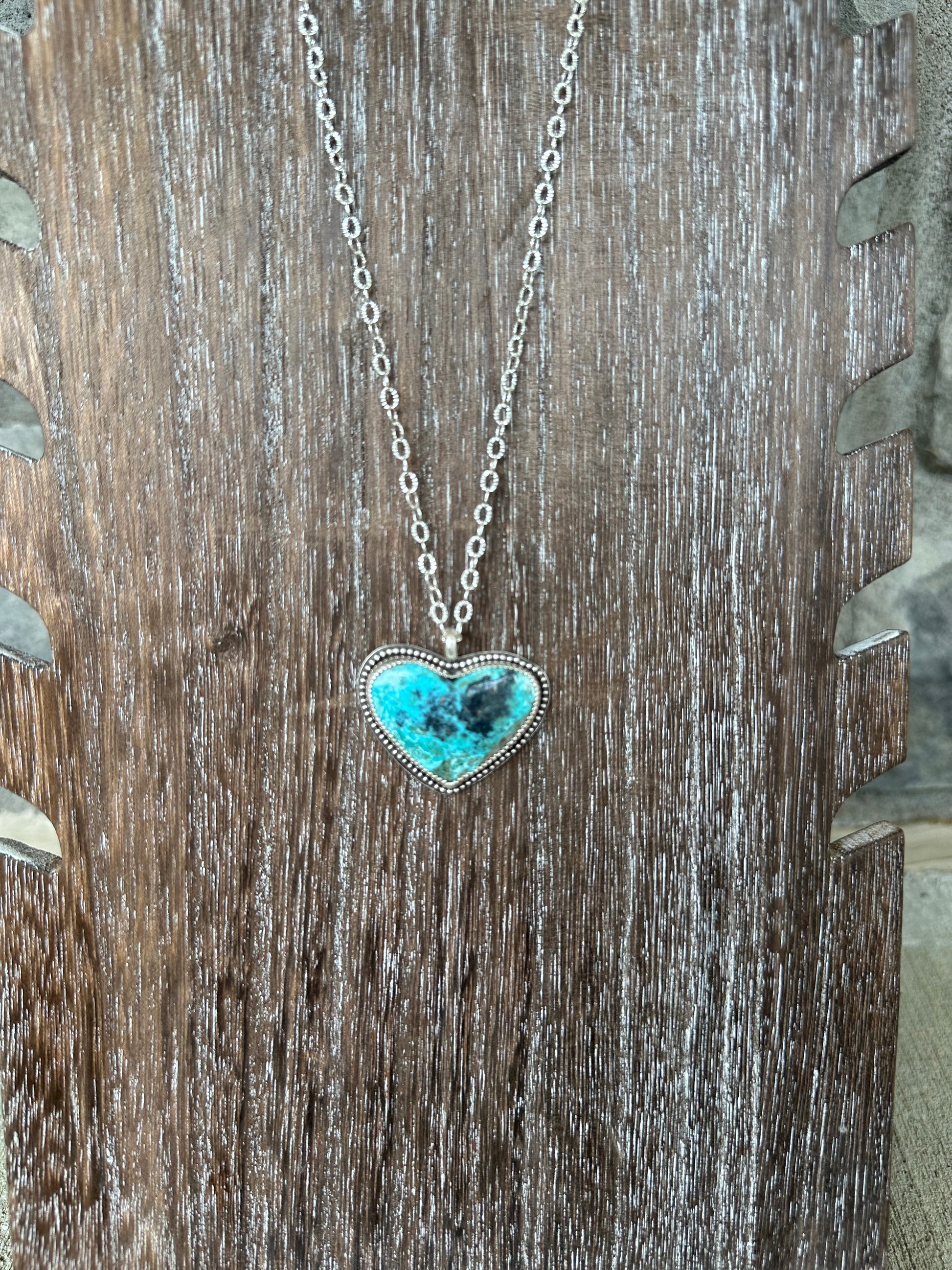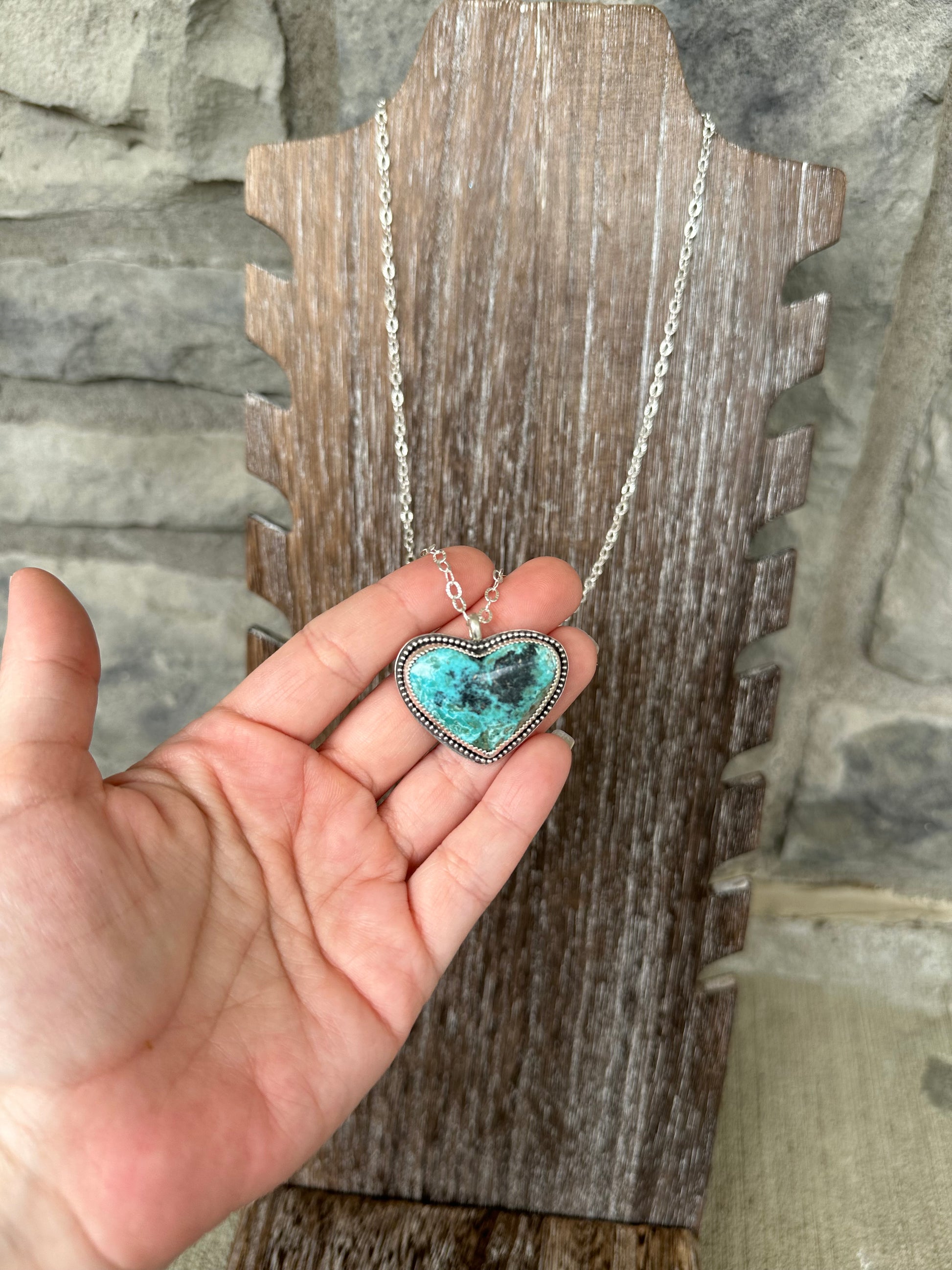 This Kingman Heart necklace is a statement piece. Sterling and fine silver