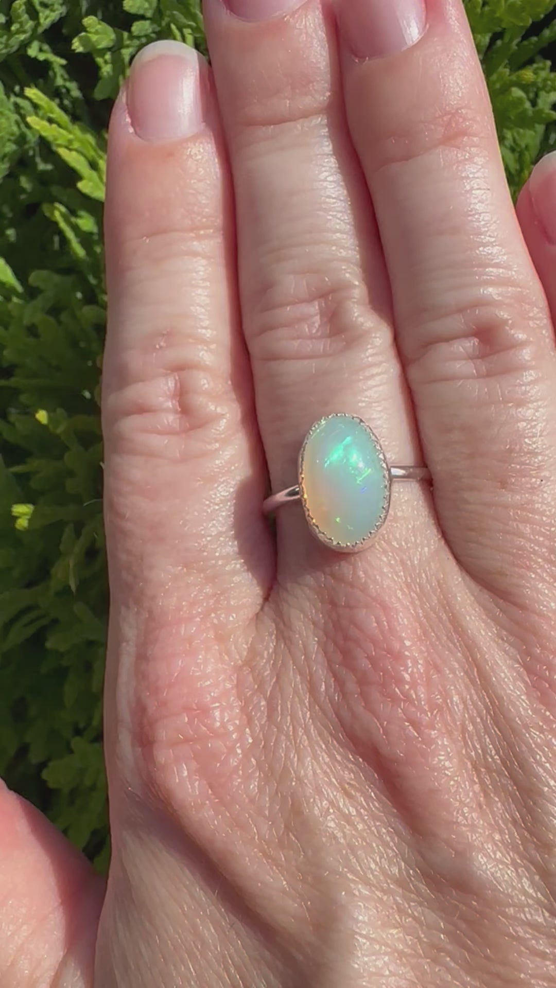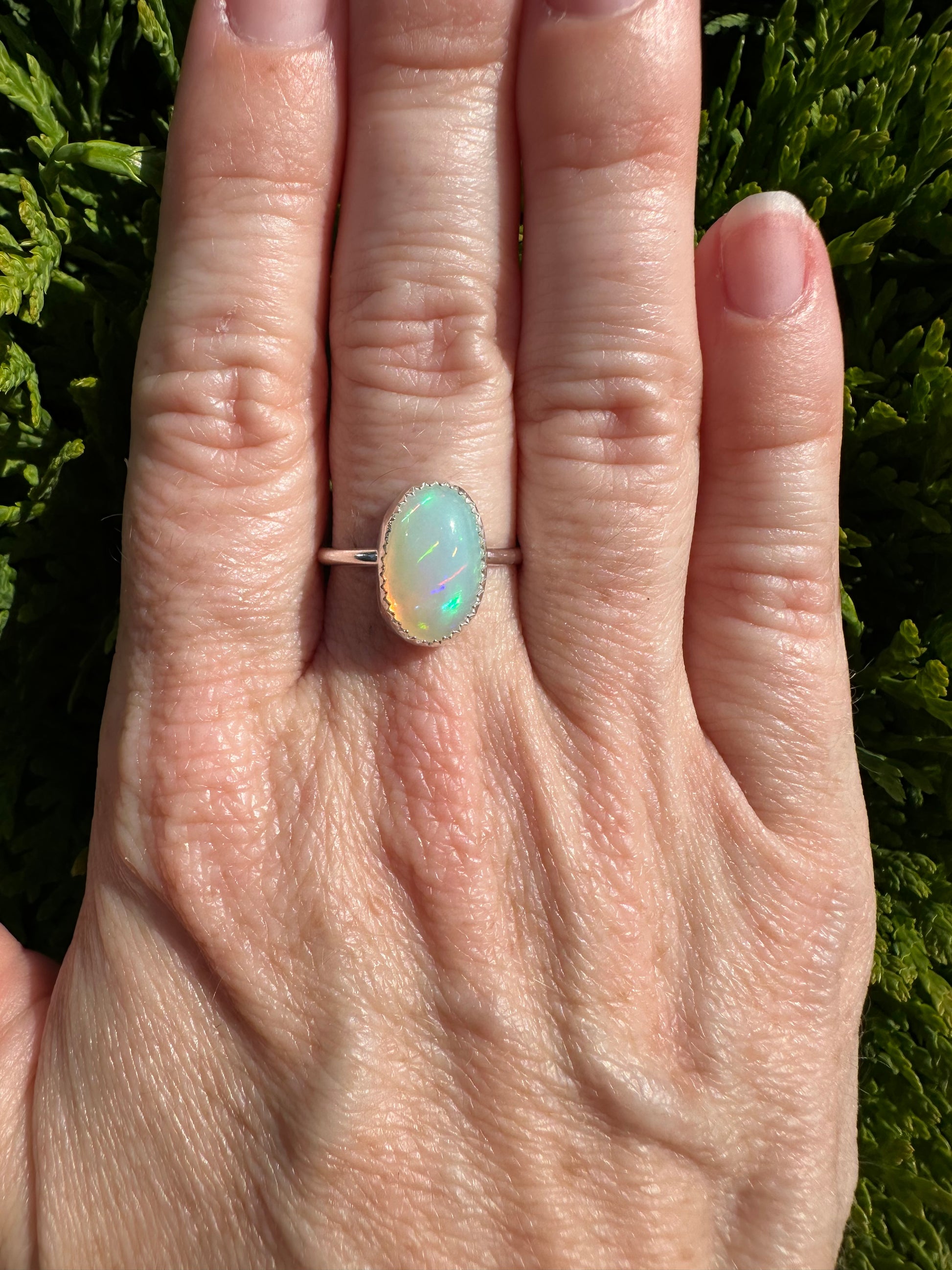 Beautiful Welo opal ring in a size 8. This opal flashes all colors of the rainbow.