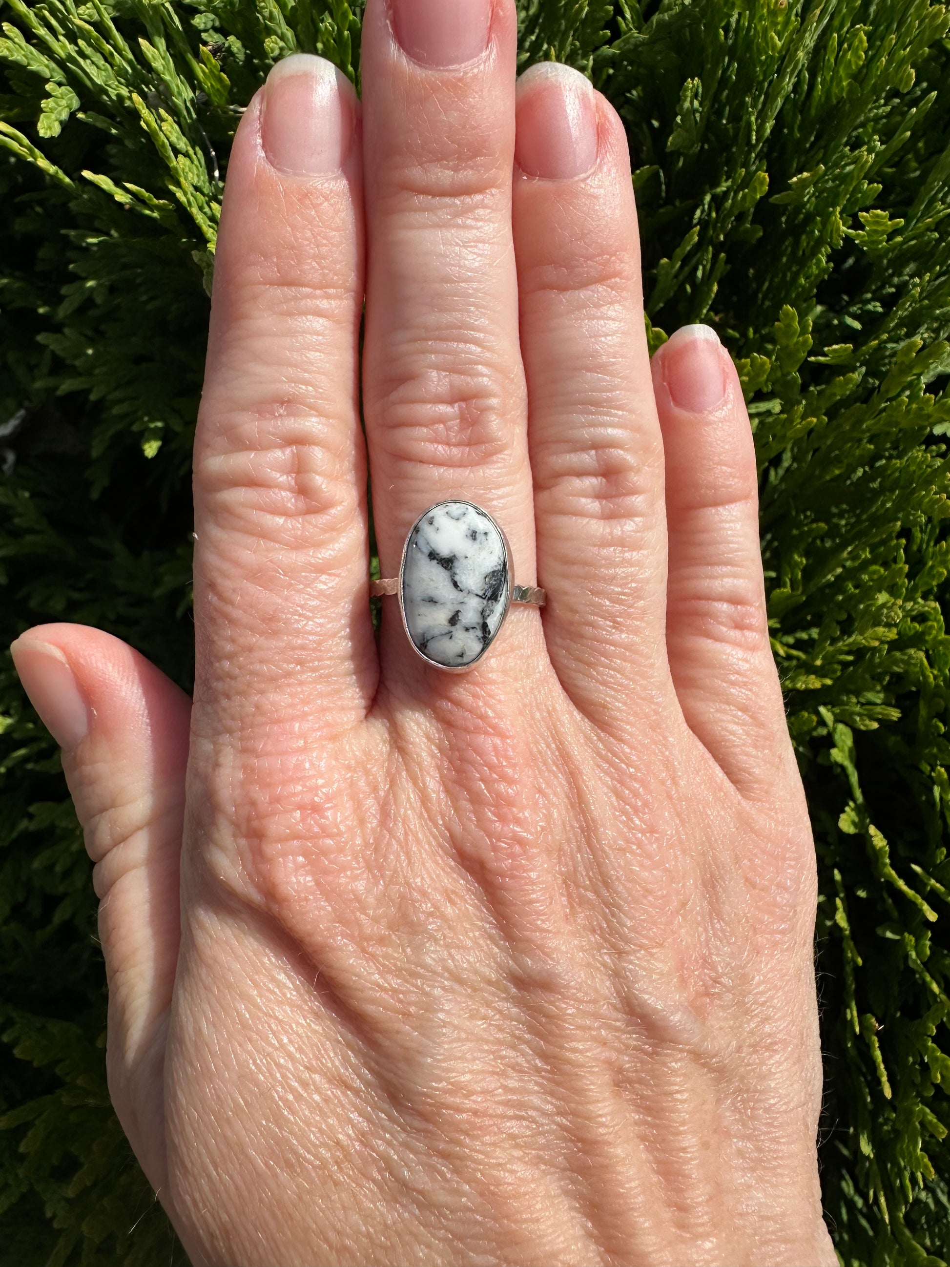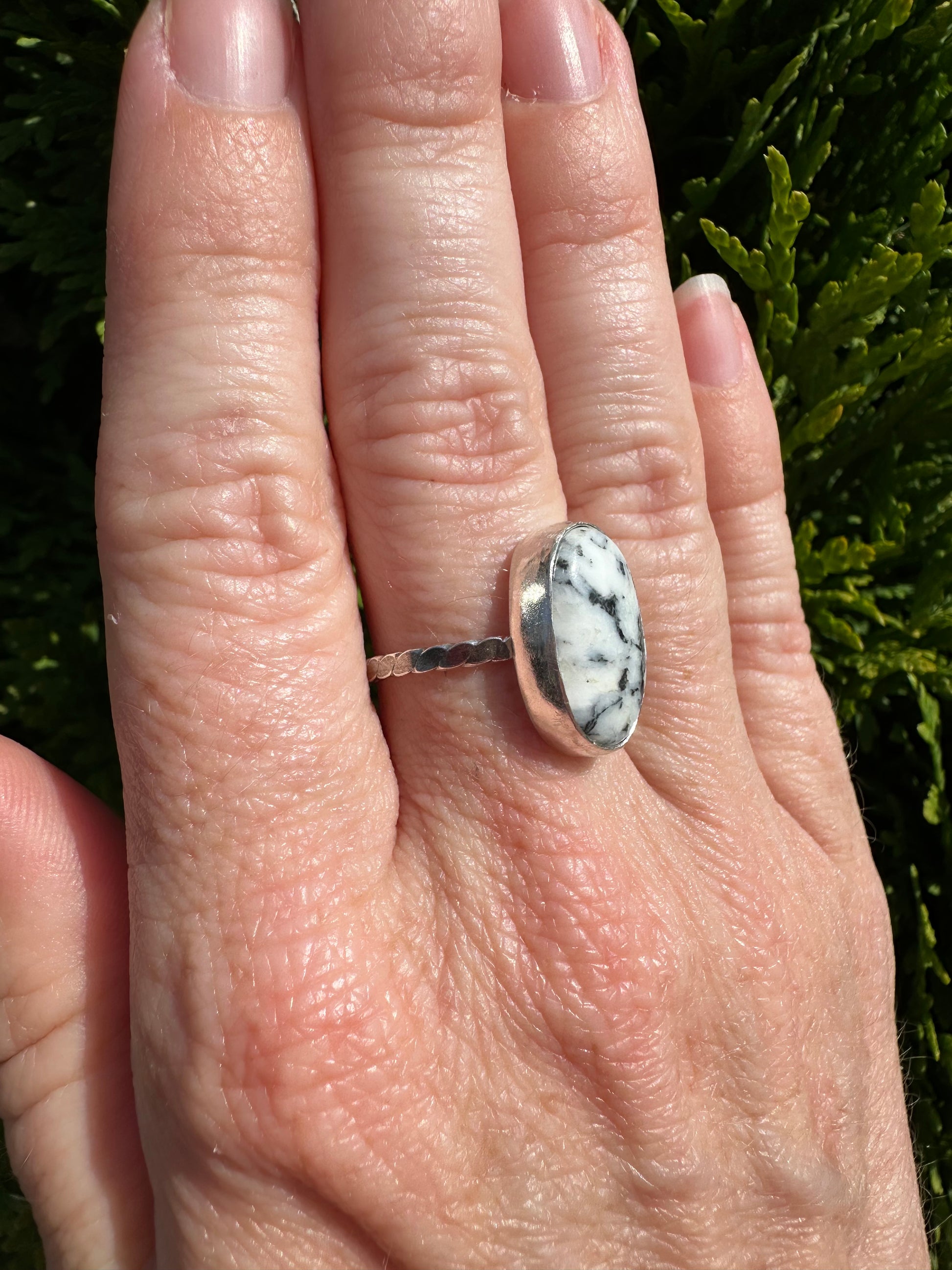 Simple white buffalo ring size 7.5 made from sterling and fine silver